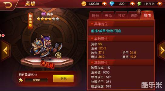 三:典韦(半肉半辅助,控制减对面物理攻击防御,较难获得- -看脸)推荐星数:5星