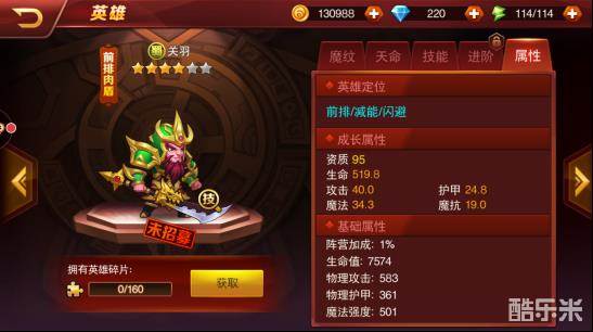 四:关羽(半肉大招减对面能量,较难获得- -看脸,土豪充值到V9可获得~)推荐星数:5星