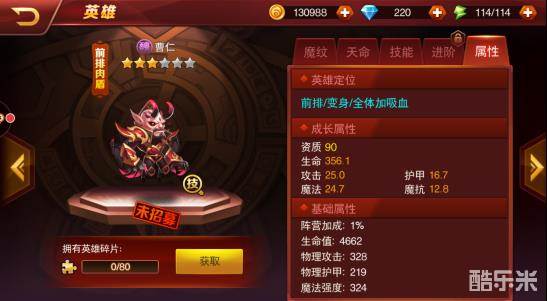 六:曹仁(开大减伤加属性,还是挺肉的)4星