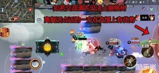 抢桃树敌方肯定会来打一波,不过我们可以绕后抢夺复活点,再与敌方打,这样就算死了,支援也会很快,或者可以正面诱敌,逐个击杀,主要要根据战局做好实施调整。