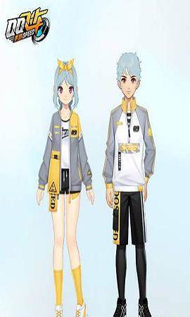 蓝灰色长发扎成马尾,用黄色发带点缀,清新可爱,低调的灰色与亮眼的黄色拼接,打造出这一款独特的圆领外套,搭配白色T恤和黑色短裤,运动感十足。男生的外套采取半拉链设计,个性十足,黑色的速干裤以黄白侧边装饰,是绿茵场上最亮眼的存在!