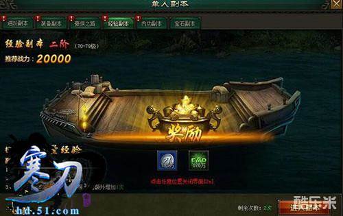 1、玩家每天都2次免费机会进入副本,杀死怪物越多,经验就越多。(至尊皇钻用户额外增加1次机会)