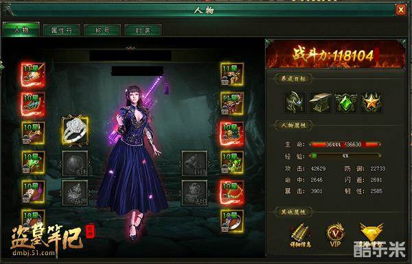 盗墓笔记游戏中的人物菜单主要分为装备战斗力、属性丹、称号及时装。前两者和角色实力息息相关。想要快速了解一个玩家的实力,人物角色界面是最快并且最直观的界面。主要有显示战力的装备界面、点击右下角的详细信息即可查看自己的基础信息、卓越信息及人物抗性等数据。