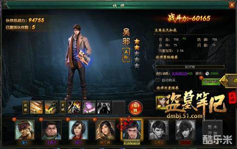 最后编辑于6年前古墓寻宝这种事,没有小伙伴那是万万不能的,于是乎在51《盗墓笔记》中,官方为各位玩家准备了一系列耳熟能详的伙伴协助助战!身为老九门之后的你,在这些伙伴的帮助下,再临七星鲁王宫、重翻西沙海底墓,跟着张起灵的脚步,探秘终极之秘!