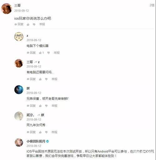 和前两次测试不太一样的是,第三次测试官方只开通了安卓测试通道。许多之前参与过一测二测的iOS玩家们,得知与三测“无缘”后,纷纷到论坛上去向官方倾诉“委屈”。