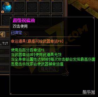 这个超级祝福油使用后可百分百使幸运+1,不过当武器幸运为9时使用是无效的。这个道具怎么获得呢?