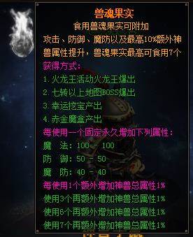 而食用赤月传说兽魂果实,每个可固定长久增加下列属性: