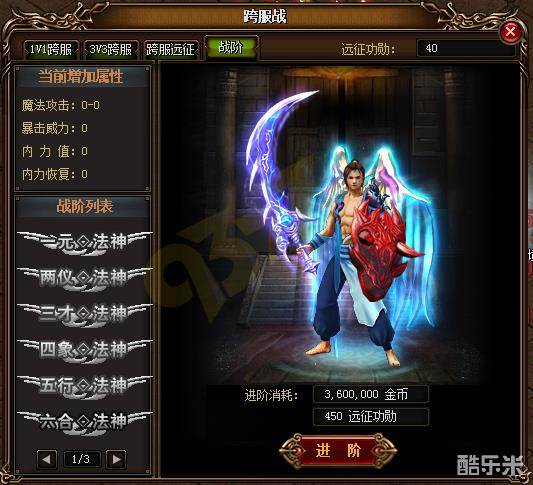 赤月传说战阶一共分为17阶,不同的职业的战阶封号后缀都不同,战士的后缀是战神,法师的后缀是法神,道士的后缀是道尊。战阶可提升本职攻击、暴击威力、内力值和内力恢复,不同职业的内力值提升各不同。下面就以法师职业为例,介绍下各阶战阶及其属性:
