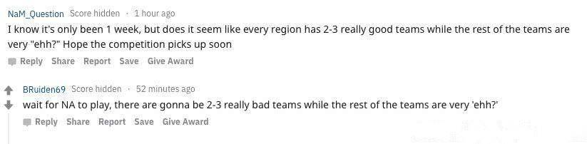 - 等NA开赛之后,会有2-3支非常糟糕的球队,而其他的球队都很“嗯?”