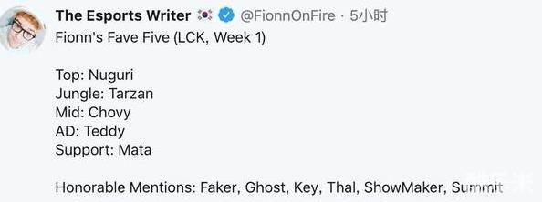 英雄联盟ESPN撰稿人评LCK首周最佳:Faker落选