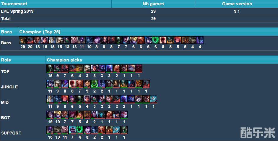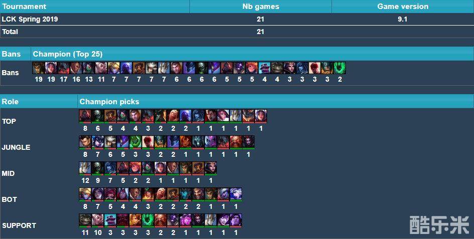 还未出现100%被禁用的英雄。但他们下路选择比起LPL要更加的多样,并且吸血鬼和蛇女的下路还未尝一败。不过两场吸血鬼是GRF,一场蛇女是DWG,没有输似乎也不意外。