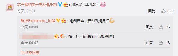 苏宁官博也表示了谅解,凌晨零点的时候苏宁给记得评论称:“加油就完事儿啦~”