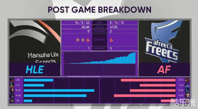 小龙坑处,HLE打出0换3击溃AF。Ucal上路被抓死,HLE拿下大龙。