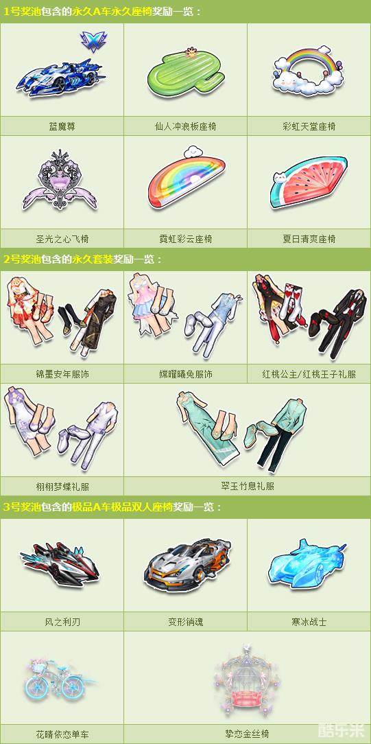 1月27日-2月9日期间,每日一抽奖励全面更新,参与就有机会赢取永久极品A车蓝魔尊、极品永久双人座椅仙人冲浪板座椅、彩虹天堂座椅等奖励,千万不要错过哦!