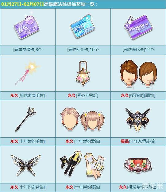 1月27日-2月7日期间,高级魔法阵回归,有机会赢取双人座椅【樱粉梦境跷跷板】,以及十周年专属系列服饰、手杖、戒指等,赶紧来参与!