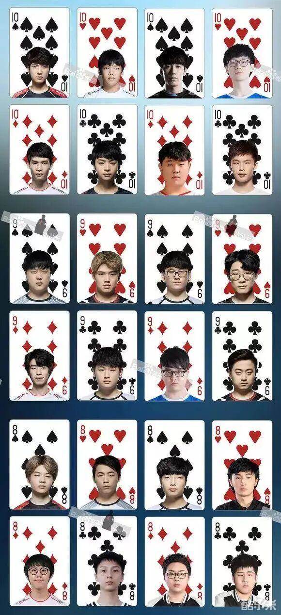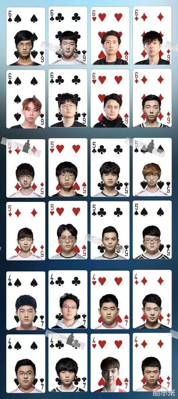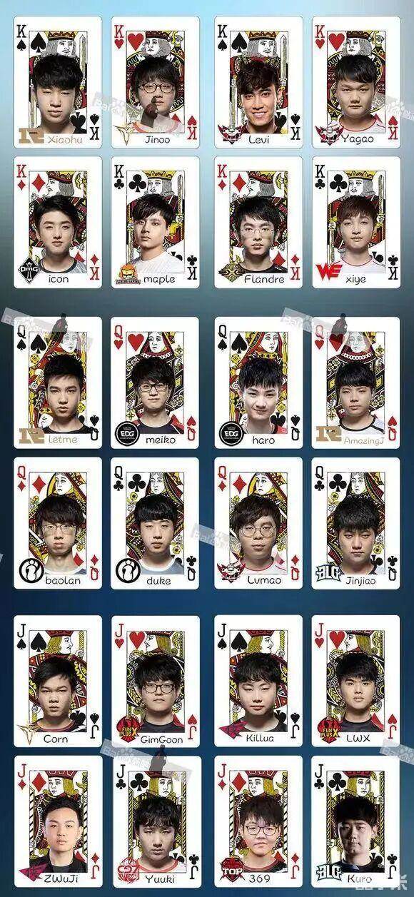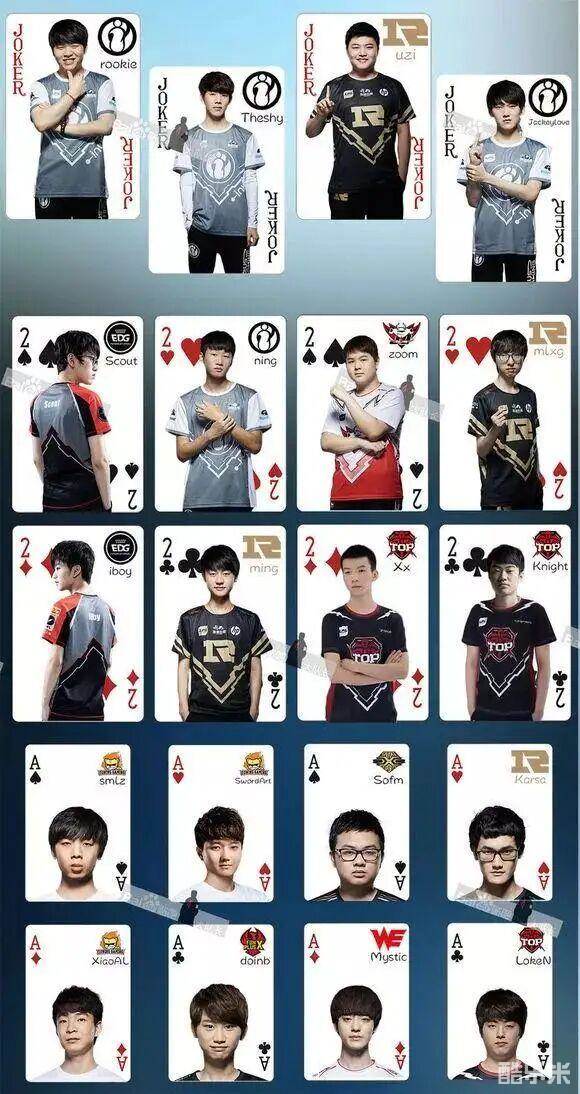 有网友将LPL所有的职业选手和部分主播退役选手制成了两幅扑克牌,Rookie和UZI占据两张大王牌,Theshy和JKL则是两张小王。