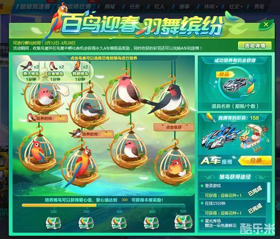 春日里快来和小橘子穿上新套装,守护雏鸟长大,赢取永久赛车吧!