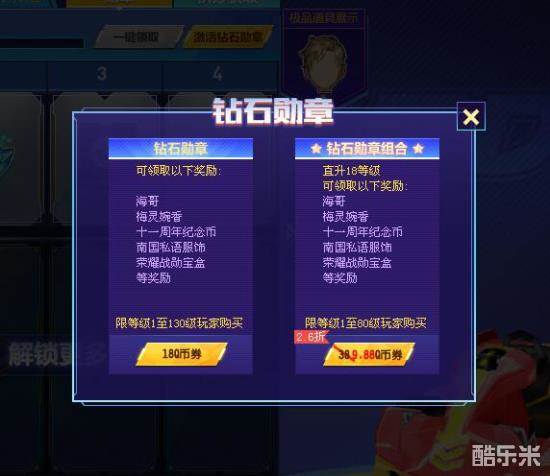 2.默认解锁白银勋章,赛季时间内,在一定等级之前,可通过购买Q币券,解锁钻石勋章,获得价值超过2000元的奖励。