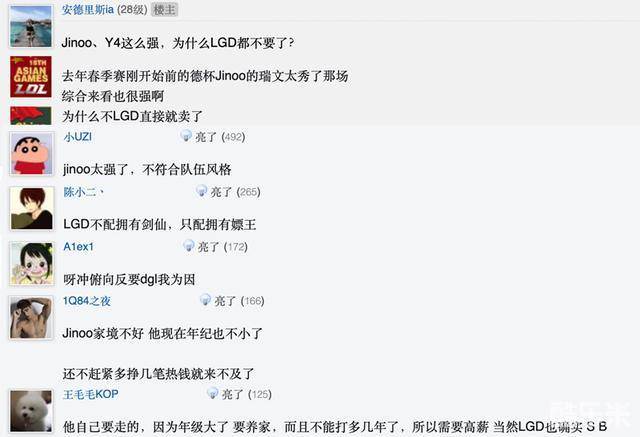 在比赛结束后不久,就有网友在论坛中聊起了这个话题,有网友表示“Jinoo、Y4这么强,为什么LGD都不要了?去年春季赛刚开始前的德杯Jinoo的瑞文太秀了那场,综合来看也很强啊,为什么LGD直接就卖了呢。”