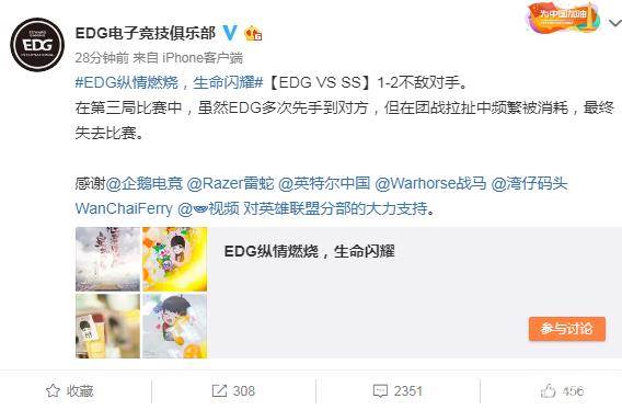 EDG在昨日的比赛中被Snake让一追二遗憾败北,而Snake也打破了主场赛季首战不胜的魔咒。赛后EDG官博发布赛果通告,引来粉丝热议。