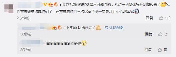 - 果然7点钟的EDG是不可战胜的,八点一到开始骚起来了我们重庆哪里得罪你们了,在重庆看你们三次比赛了没一次是开开心心地回家