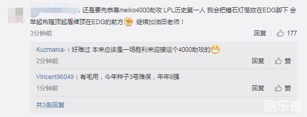 - 还是要先恭喜meiko4000助攻,LPL历史第一人。我会把锤石灯笼放在EDG脚下,会举起布隆顶起盾牌顶在EDG的前方继续加油田老师!