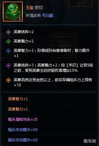 三十六计中玉玺的双属性确实很少见,特别是增加英雄魅力这项属性。要知道现版本的三十六计,魅力加成胜过智力。当然另一方面,这件宝物的属性加成即全面又强大。真的是羡煞旁人啊!