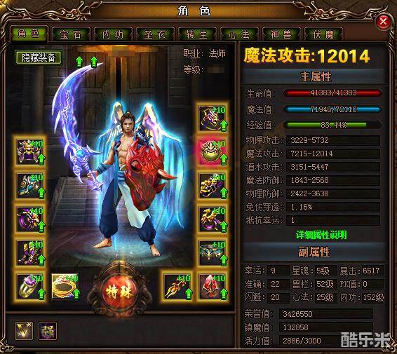 以上大部分属性是我们都熟悉的,比如生命值,这个将决定你的血量;攻击,这将影响你打怪或PK时的基础伤害输出能力;防御,这将影响你受到攻击时的抵抗能力。但这并不是所有的属性,还有死亡重生、破甲属性等通过特戒或神兽等其他系统获得的属性。