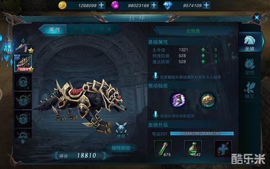 另外,每个坐骑都有属于自己的被动技能,炎狼兽自带移动光环与炼金光环,移动光环会增加移动速度,冶金光环则会提升5%的双倍金币掉落概率!怎么样,是不是很诱人,再也不用发愁自己的坐骑除了骑着它毫无其他用处了!