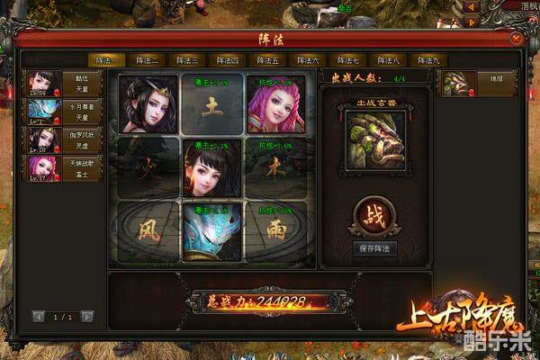 我们可将九宫法阵分为前中后三军,前军一般放置蛮士职业,以抵挡大量伤害;中军可放置天星职业,而后军则由灵虚坐镇。新游《上古降魔》中除了主角与英灵可以上阵外,阵法系统中还有这独特的玄兽站位。不同的玄兽可为九宫法阵带来不同增益属性,玩家可根据玄兽增益效果适时调整站位,以达到最佳的效果。