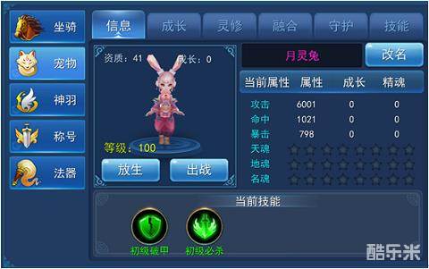看了这么多或萌或霸气的宠物,那么获得了它们之后该如何设置出战呢?在宠物界面选中已有的宠物便可在信息界面就可以哟!这样一来,我们的宠物小伙伴就能与我们并肩作战了。如果想还它自由,还能选择放生任它回归仙域最深处呢!不过,它们会像脱了缰的野马一样再也不会回来,因而放生此举仍需慎重呀!