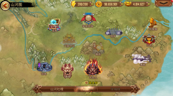 接下来在山河图中点击副本,我们就可以看到有很多好玩的副本哦。宝库副本位于山河图的左上角。