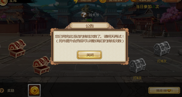 宝箱里有数量不一的银票可以兑换成不同数额的银两,按照每日攻打的次数可以开启不同的宝箱,攻打次数越多宝箱的奖励越丰富。