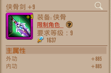 - 侠骨装备为当给角色装备整个套装时会增加所有指数和基本技能值的装备