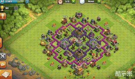 如下图,这种阵是防龙的引导阵,以龙的智商很难会进内圈,会被一直引导在外圈徘徊,然后内圈防空一直输出,(因为我没有7本号所以只能找网图,其实这个阵可以改一下,防空全部放外圈,箭塔法师塔放内圈,中间不要放建筑空2格,这样子龙流是不可能能推平的。