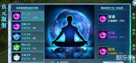 真元通过消耗元气打造,有品阶、可装备,分普通、传承、稀有不同品质。可进行洗练,每个真元最多拥有六条基础属性,稀有真元鉴定后有一定的几率附带一个强力真元技能,可通过消耗其他多余的真元升级真元技能。