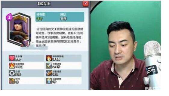 女王是部落冲突中的英雄单位,具备非常远的攻击距离,高额的伤害以及独特的隐身技能,而皇室战争中这张有趣的隐藏传奇卡牌一样传承了这些特点。从玩家们挖掘出的数据中我们可以看出,二级女王生命值仅为237点,但是具备1788点/秒的范围伤害,独特的隐身特效,高额的暴击几率以及13点的超高射程。事实上,在玩家的演示视频中,女王能够隔岸三下点掉敌方的国王塔,快速解决战斗。当然了,这么一张影响平衡的卡几乎没有可能被放出来。