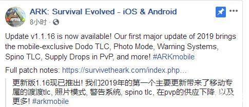 方舟生存进化棘背龙战斗形态 1.1.16更新公告