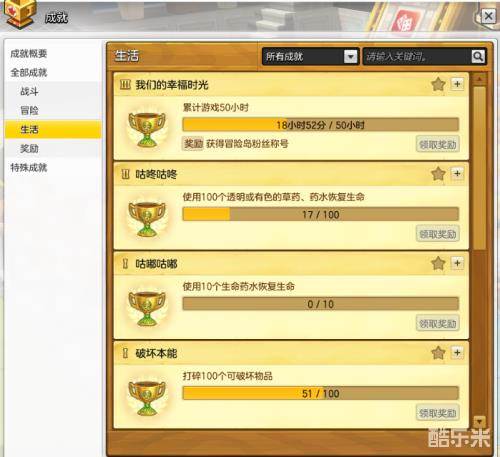 游戏当中可探索部分非常丰富,除了一些基本操作(跳跃、游泳、爬梯子等等)、战斗数据(击杀、使用技能等等)能获得成就之外,使用表情、钓鱼、路边演奏、挂机、吃料理、使用消耗道具,甚至是到处瞎转悠,能想到的所有操作,都有可能获得成就。