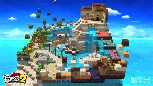 在场景方面,岛2给人的感觉则与前作完全不同,从头到尾都贯彻了方块的风格。每一个单独的地图,都是一个完整的方块岛屿,所有的地基建材都是方块,房屋等密度更高的材料也都是方块。不仅场景采用了这个设计,远景的模糊画面也采用了方块的设计风格,而不是单纯的2D画面。