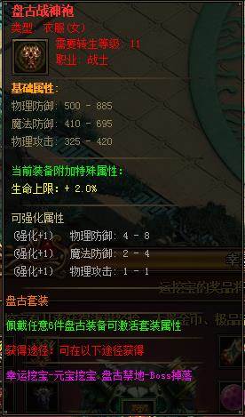 主宰级装备的属性如何呢?看看其中的赤月主宰神袍与11转盘古战神袍的属性对比: