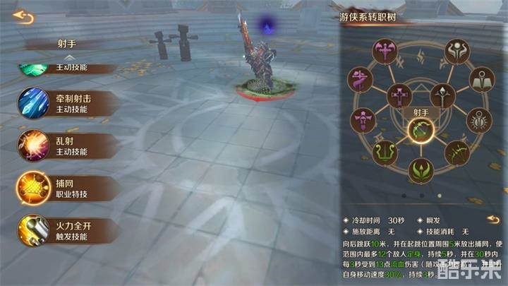 捕网不再赘述,牵制射击是射手最常用的控制技能,一个群体减速并且加中量伤害,3秒CD瞬发,可以说是风筝近战、秦王绕柱的必备技能。