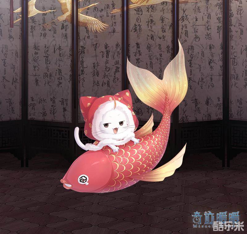 新年签专属摆件“福猫抱鲤”为可移动摆件。