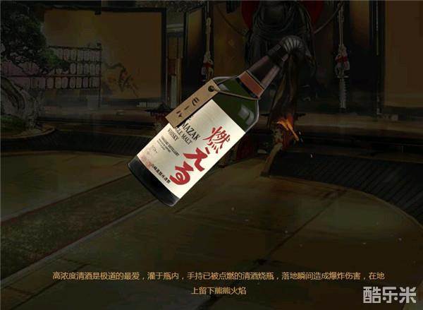 清酒烧瓶:高浓度的烈酒是极道龙的最爱,也正是因为长期酗酒,极道龙才会成为如今这幅样子,但被点燃的清酒烧瓶有着强大的威力,扔在地上瞬间爆炸造成高额伤害,同时会在地上留下火焰。