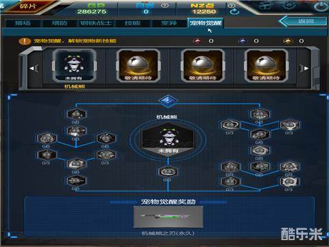 首先我们要看的就是觉醒界面。觉醒界面在逆战游戏大厅“天赋”选项中,目前只有机械熊可觉醒。机械熊的觉醒有两条觉醒树,每一条觉醒树上面都有若干个天赋插槽。累积达到一定的觉醒点就能解锁对应的插槽,这个时候玩家就能消耗不知道是什么东西来给已经解锁的插槽进行加点(最高三点)。