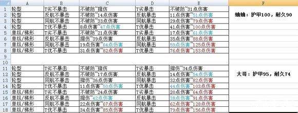 轮型 同航不暴击 不破防~21点伤害 同航暴击 17点伤害~61点伤害