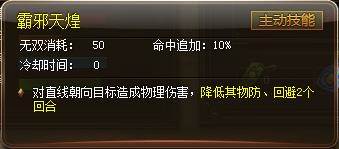 徐晃拥有高级强魄(生命)和中级激力(物攻)两个被动技能,很显然这也是为了区分他与60级、50级肉盾型武将的一个设计,即在定位成肉盾型武将的同时赋予他一定的输出能力。