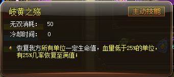 对于华佗的技能大家肯定已经猜想很久了,这次开放后想必各位玩家应该也没有失望,首先是全体治疗,这点应该早在预料之中,而似乎是为了契合华佗‘妙手回春’的历史评价,他的技能中附带有一个无比强大的效果,即对于血量低于25%的单位,治疗时有25%的几率将其血量恢复至满值。起死回生、扭转战局的评价似乎已经可以想见得到,但是实际效果如何,还是让我们拭目以待吧!