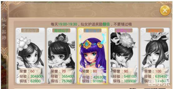 活动奖励:成功护送仙女可以获得大量经验奖励和铜钱奖励;每天最多3次机会,不要错过哦!仙女分为白、绿、蓝、紫、橙5个等级,白色奖励最低,橙色奖励最高。玩家可以在主城护送仙女NPC领取护送仙女任务,领取任务前可使用仙女石道具刷新仙女等级;(每天前3次刷新免费)