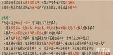 *绘卷全部修复后仅能查看剧情,无法再获得绘卷碎片和进行绘卷修复。